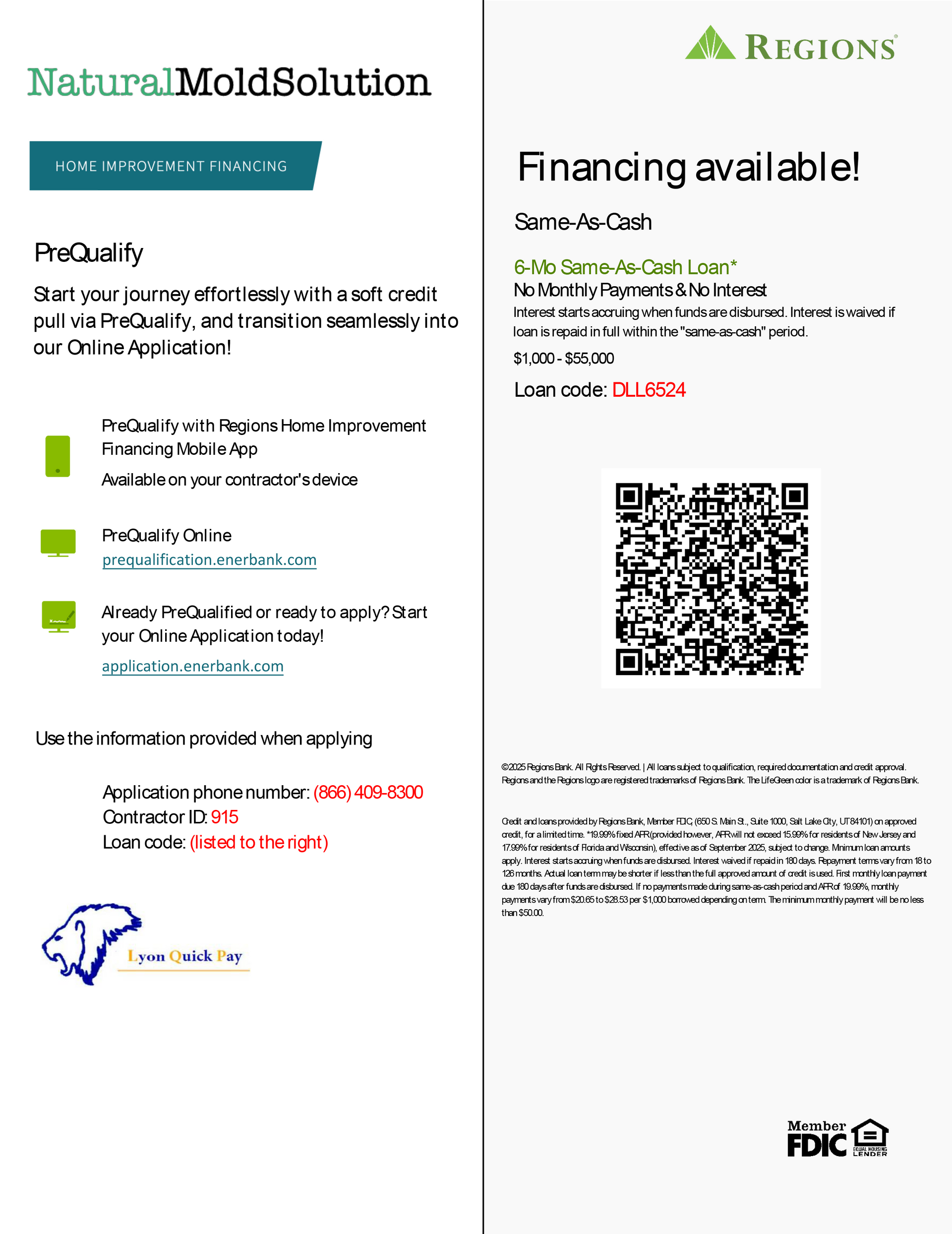 *Loans provided by EnerBank USA, Member FDIC, (1245 Brickyard Rd., Suite 600, Salt Lake City, UT 84106) on approved credit, for a limited time. Repayment terms vary from 24 to 132 months. Interest waived if repaid in 365 days. ____% fixed APR, effective as of March 1, 2018, subject to change. Interest starts accruing when the loan closes.